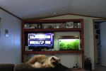 This project is about 8 years old at this point. At the time this was a fairly large build and it was built in place. It is a full eight feet long and I want to say about seven or eight feet tall. I actually still use this as our main entertainment center. It was painted black several years ago to mach some other furniture we have. It is really basic and built out of two by fours and quarter inch plywood.